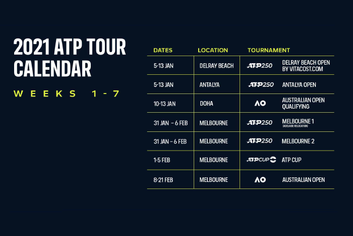 남자프로테니스(ATP)는 내년 1~7주차 투어 일정을 업데이트해 16일(이하 현지시간) 발표했습니다.