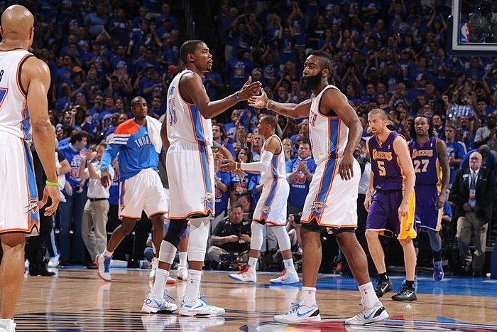 최근 10 시즌 동안 하든도 세 번, 듀랜트도 세 번 리그 득점왕 타이틀을 차지했습니다.