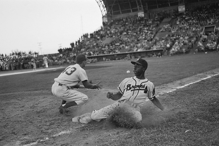 고교 졸업 후 니그로 아메리칸리그 소속 인디애나폴리스에서 뛰던 에런은 1952년 6월 10일 이 팀과 계약하면서 MLB를 꿈꾸게 됐습니다.