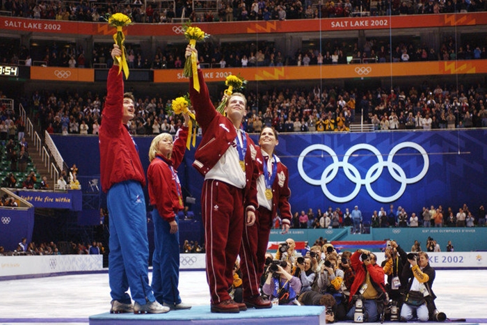 우여곡절 끝에 러시아(왼쪽)와 캐나다 팀이 페어 금메달을 공동 수상 2002 솔트레이크시티 올림픽. 솔트레이크시티=로이터 뉴스1