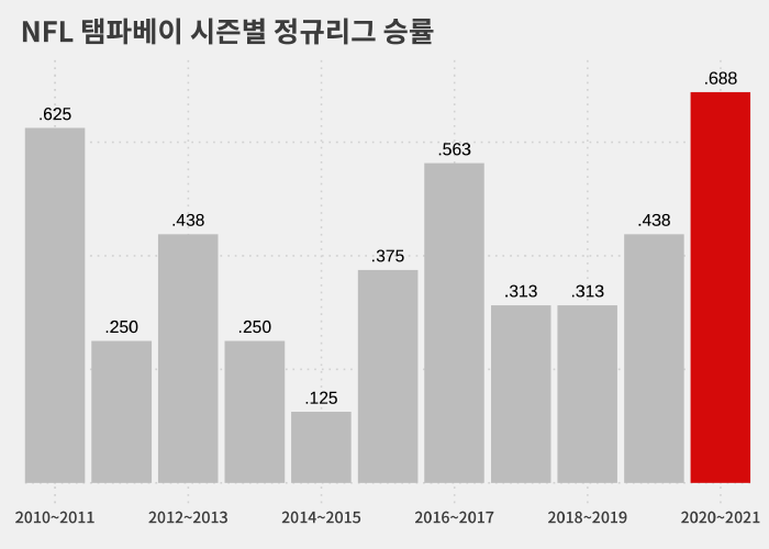 브래디를 중심으로 팀을 재편한 이번 시즌에는 11승 5패(승률 .688)를 기록하며 NFC 전체 5위로 정규리그를 마쳤습니다.