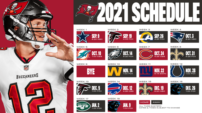 지난 시즌 슈퍼볼 챔피언 탬파베이(NFC 남부 지구 소속)가 새 시즌 정규리그 때 어떤 일정을 소화하는지 한 번 보겠습니다.
