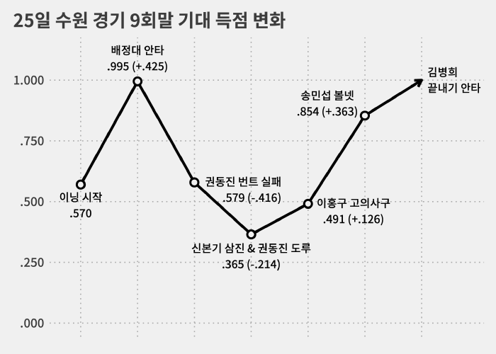 이 정도면 '이홍구에게 고의사구를 낸 게 문제였다'고 말하기에는 너무 미미한 숫자라는 생각이 듭니다.