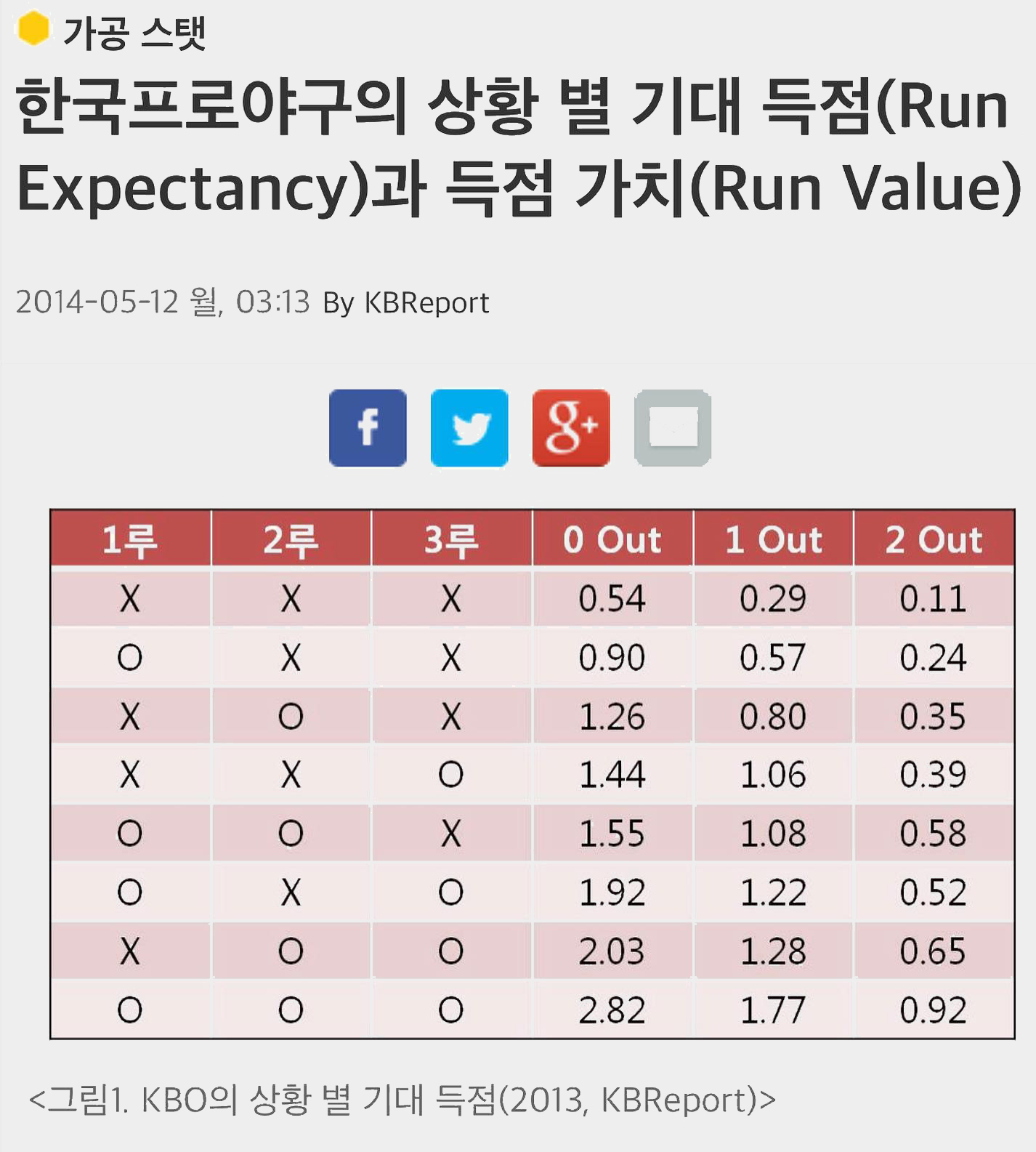이걸 뒤늦게 발견하고 읽는데 '좀 오래된 자료이지만 KBO리그 기대득점을 공개한 곳이 별로 없어서'라는 표현이 자꾸 마음에 걸렸습니다.