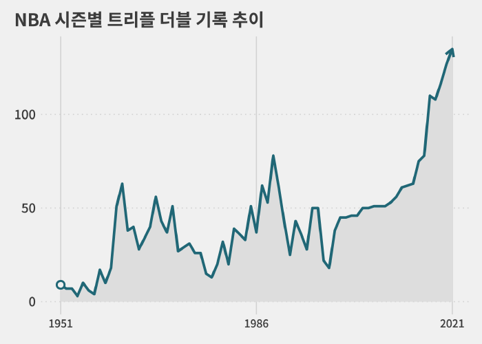 이를 다른 말로 표현하면 최근에는 트리플 더블이 쏟아지고 있다는 뜻이 됩니다.
