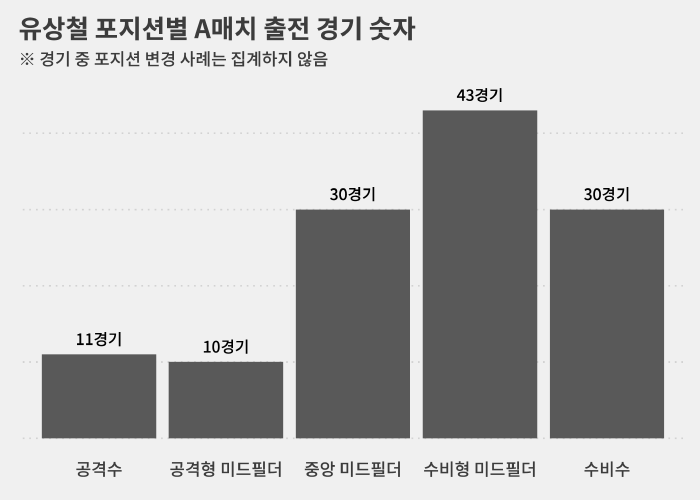 대표팀에 공격수가 필요하면 스트라이커로 나섰고, 미드필드가 필요하면 중원을 지켰으며, 수비수가 필요할 땐 센터백이 됐습니다.