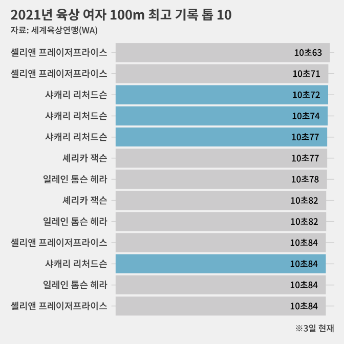 리처드슨은 올해 4월 10일 100m를 10초72에 뛰면서 프레이저프라이스를 바짝 추격하고 있던 상황.