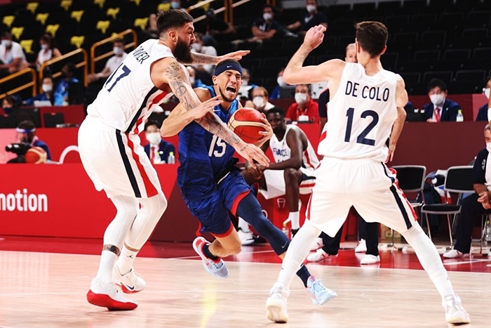 국제농구연맹(FIBA) 랭킹 1위 미국은 25일 일본 사이타마(琦玉) 수퍼 아레나에서 열린 2020 도쿄(東京) 올림픽 농구 남자 조별리그 A조 1차전 경기에서 프랑스(7위)에 76-83으로 졌습니다.