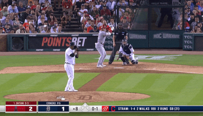 오타니는 18일(현지시간) 디트로이트 방문 경기에서 팀이 2-1로 앞선 8회초에 선두 타자로 타석에 들었습니다.