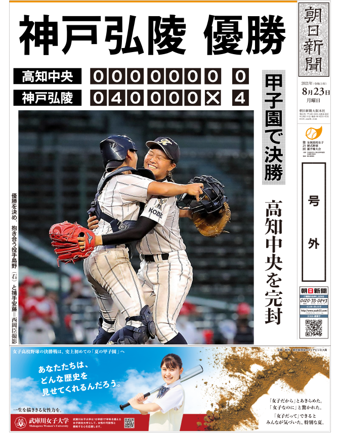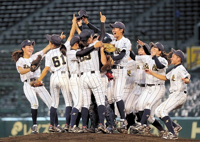 효고(兵庫)현 대표 고베고료가구엔(神戶弘陵學園)고가 초대 '여자 고시엔(甲子園)' 챔피언에 등극했습니다.