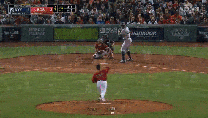 그린 몬스터는 양키스가 3-1로 추격한 6회초에도 또 한 번 스탠턴을 1루에서 멈춰 세웠습니다.