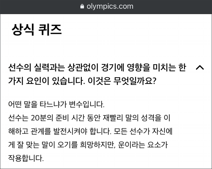 문제는 올림픽 승마와 달리 자기 말을 타고 승마 경기를 치를 수 없다는 점입니다.