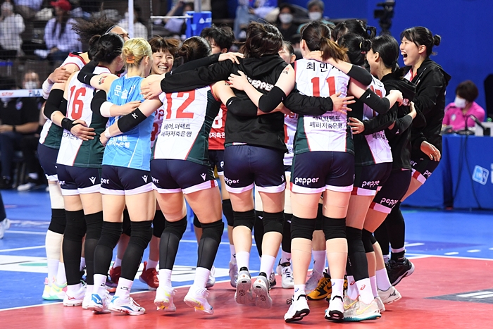 페퍼저축은행은 이 경기서 IBK기업은행을 3-1(25-21, 25-21, 22-25, 25-23)로 물리치고 창단 후 첫 승을 기록했습니다.