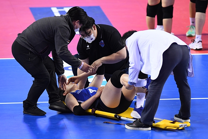 게다가 라셈이 흔들릴 때마다 라이트 자리를 채운 김희진(30)도 이날 4세트 18-15 상황에서 무릎 부상을 당하고 말았습니다.