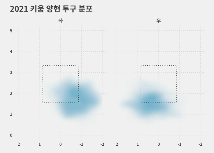 양현은 투심 58.7%, 커브 41.3%로 사실상 투피치 스타일이었습니다.