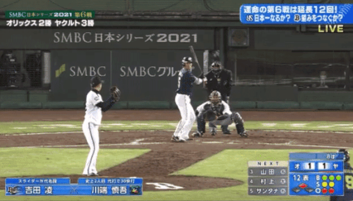 그건 야쿠르트 역시 마찬가지였습니다. 두 팀은 연장 12회초 2아웃까지 1-1로 맞섰습니다.