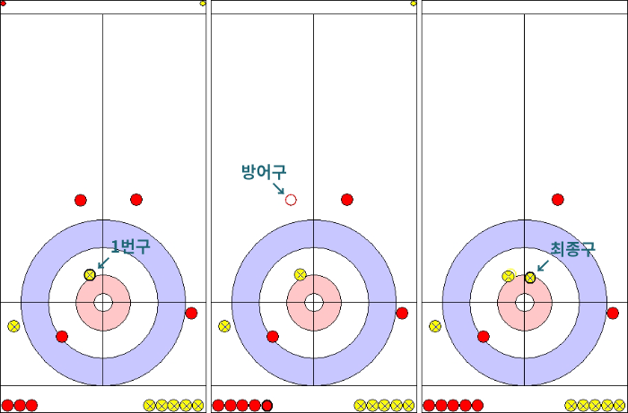 에벨리나 바로네(18)가 팀 킴 1번구를 제거하려다가 자기 팀 방어구를 날려버린 겁니다.