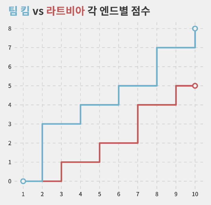 그러다 라트비아가 8엔드 마지막 투구에서 실수를 저지르면서 분위기가 바뀌었습니다.