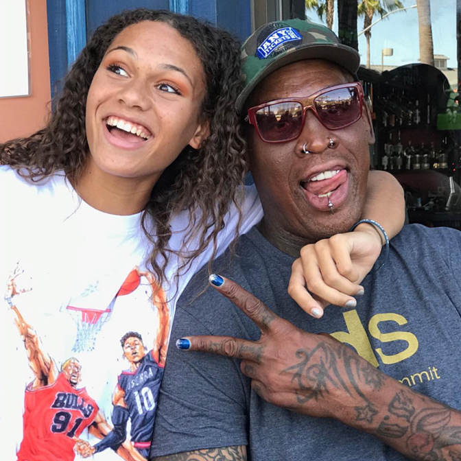 딸 로드먼은 이 경기가 끝난 뒤 인스타그램에 아버지와 꼭 끌어안은 사진을 올렸습니다.