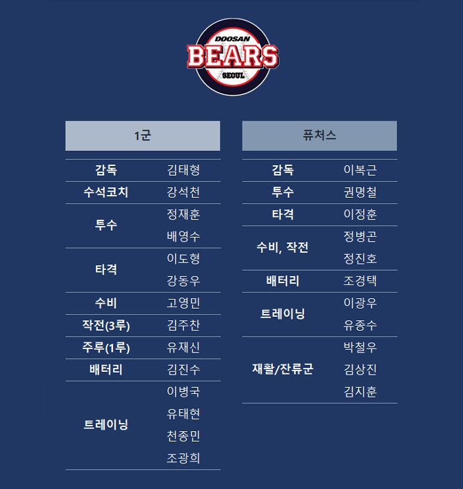 두산은 이 전 팀장을 2군 감독에 선임하는 등 2022년 코칭 스태프 명단을 확정해 19일 발표했습니다.