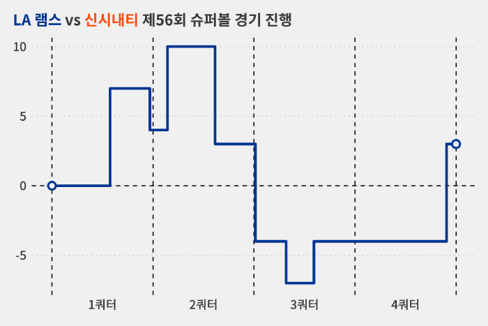 램스는 13일(현지시간) 미국 캘리포니아주 잉글우드 소파이 스타디움에서 열린 제56회 슈퍼볼에서 신시내티에 23-20 재역전승을 거뒀습니다.