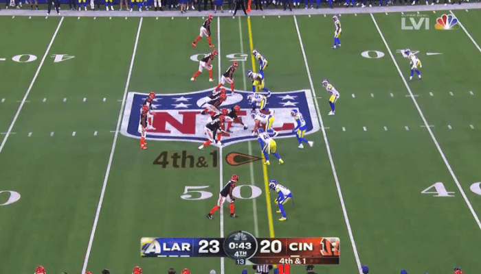 2쿼터 종료 5분 52초를 남겨 놓고 신시내티가 경기 첫 번째 터치다운에 성공하면서 램스는 13-10으로 앞선 채 전반전을 끝냈습니다.