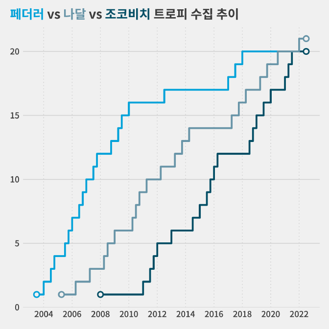 따라서 나달이 최다 우승 기록을 22회로 늘릴 가능성이 높다고 보는 게 합리적인 예측일 겁니다.