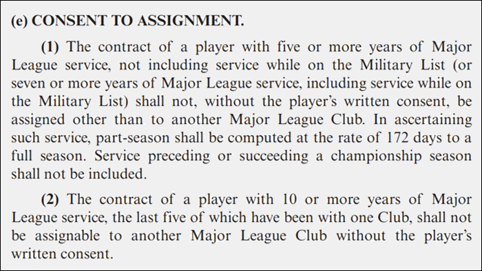 한국 언론에서 흔히 '마이너리그 거부권'이라고 번역하는 권리를 얻게 되는 겁니다.
