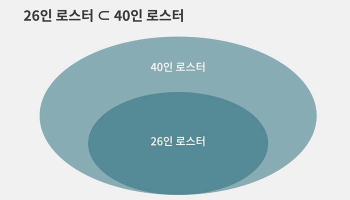 그렇다고 이 40명이 한꺼번에 '현역 로스터'에 이름을 올리고 있는 건 아닙니다.