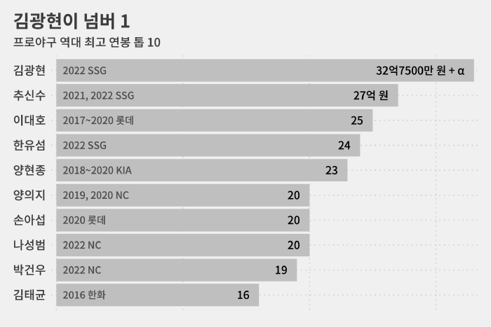 사실 계약금을 제외하고 연평균 30억 원이 넘는 돈을 받게 된 것도 프로야구 역사상 김광현이 처음입니다.