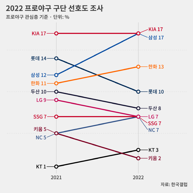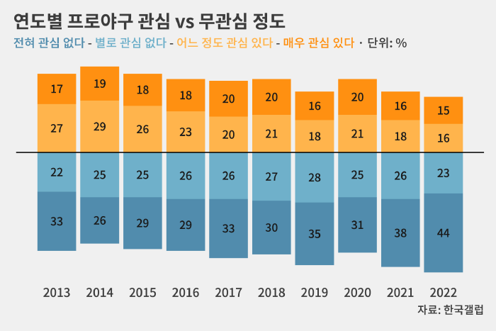 해마다 '프로야구에 대한 여론조사'를 실시하는 한국갤럽은 2022년 조사 결과를 17일 공개했습니다.