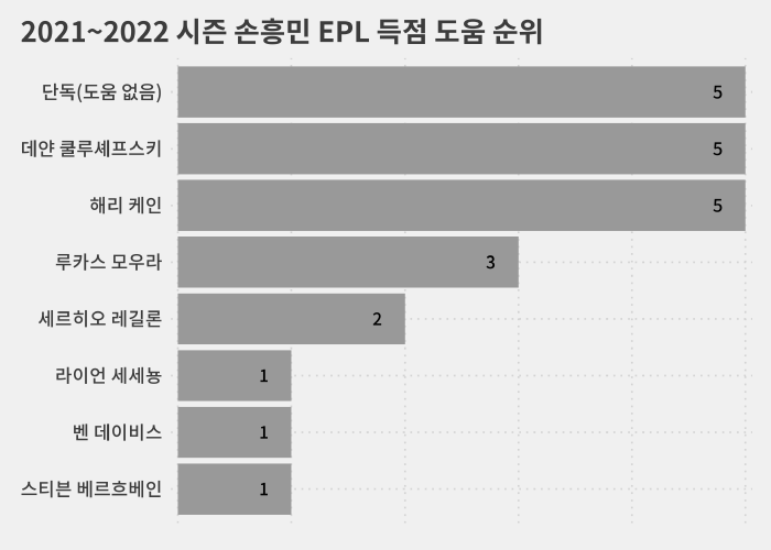 대신 케인은 올 시즌 손흥민의 득점을 다섯 번 도왔습니다.