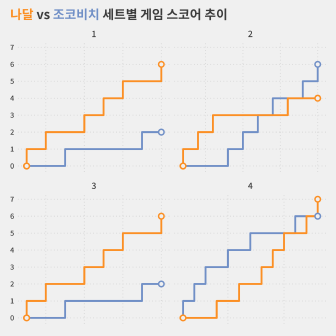 그러나 나달은 전체 포인트에서 148-130으로 앞서면서 조코비치를 제압하는 데 성공했습니다.