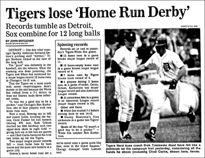 그 전에는 1991년 8월 3일 오클랜드, 2010년 5월 21일 토론토가 1점 홈런 6개로 6득점한 게 기록이었습니다.