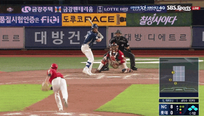 롯데 마운드를 지키고 있던 문경찬(30)은 NC 마티니(32)를 상대로 시속 131km짜리 속구를 네 번째 공으로 던졌습니다.