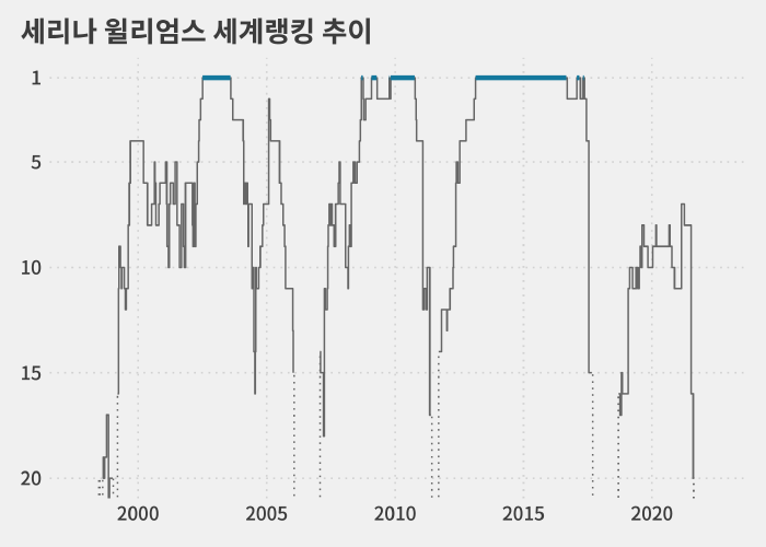 윌리엄스는 총 319주 동안 여자 테니스 세계랭킹 1위 자리를 지켰습니다.