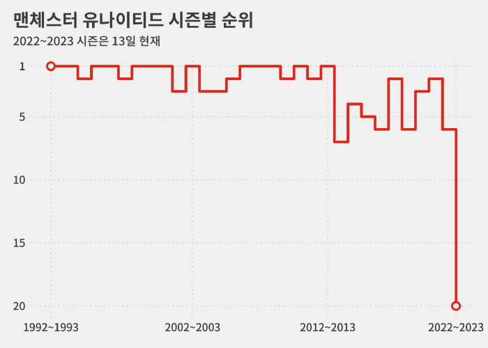 그러나 알렉스 퍼거슨(81) 감독이 마지막으로 지휘봉을 잡았던 2012~2013 시즌 이후에는 우승이 없습니다.