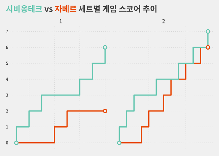 실제로 시비옹테크는 이날 첫 열네 포인트 가운데 열두 포인트를 따내는 등 자베르를 앞도한 끝에 경기 시작 30분 만에 1세트를 가져갔습니다.