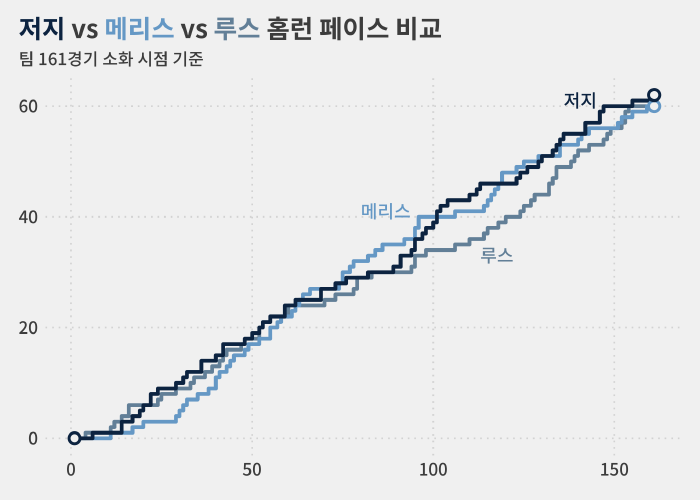 저지는 이 홈런으로 1961년 팀 선배 로저 메리스(1934~1985)가 남긴 아메리칸리그(AL) 시즌 최다 홈런 기록(61개)을 새로 썼습니다.