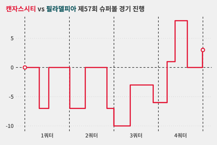 공격권을 유지한 캔자스시티는 시간 끌기 작전을 구사했고 결국 경기 종료 8초를 남겨 놓고 필드골(3점)을 성공시키면서 역전승을 완성했습니다.