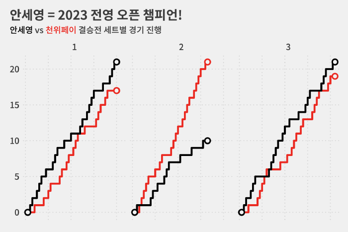지난해 이 대회 준우승자인 안세영은 세계배드민턴연맹(BWF) 랭킹(2위)에서도 천위페이(3위)보다 앞서지만 이날은 오히려 도전자에 더 가까웠다고 할 수 있습니다.
