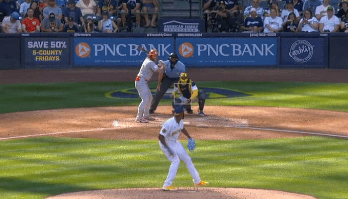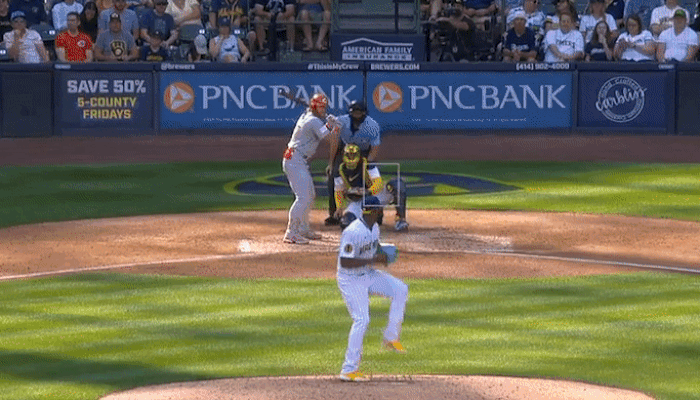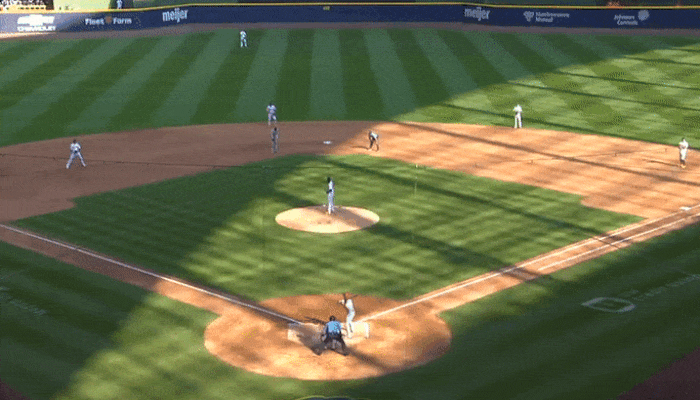 데라크루스는 2루에서 프레일리가 슬라이더에 헛스윙하는 걸 일단 한 번 지켜봤습니다.