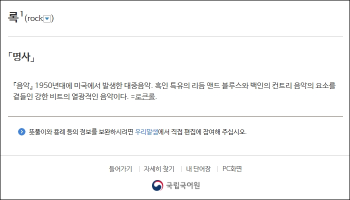 국립국어원은 rock을 '록'이라고 써야 한다고 규정하고 있습니다.