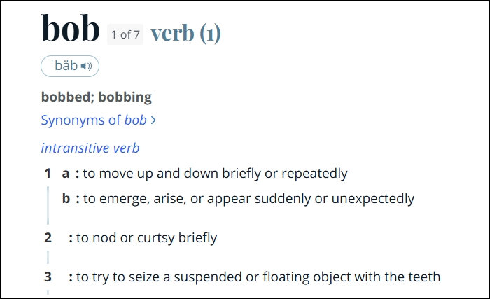 메리엄-웹스터 사전 따르면 'bobble'은 동사 'bob'에서 유래한 표현이고 bob은 이런 뜻입니다.