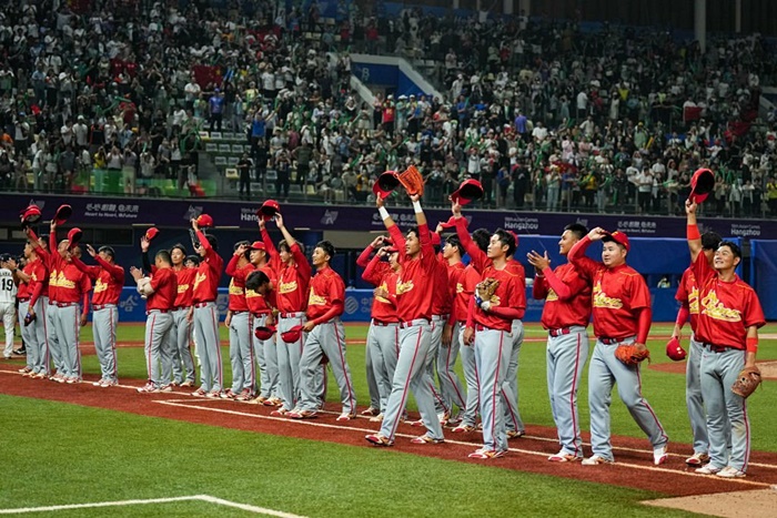 중국 야구 대표팀이 일본을 꺾었습니다.