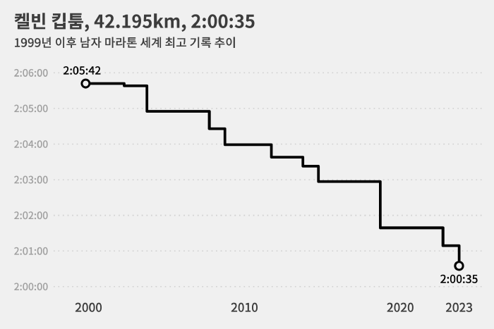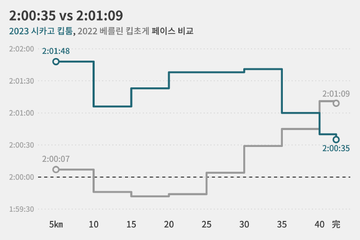마라톤 역사상 2시간 1분대 벽을 무너뜨린 건 킵툼이 처음입니다.