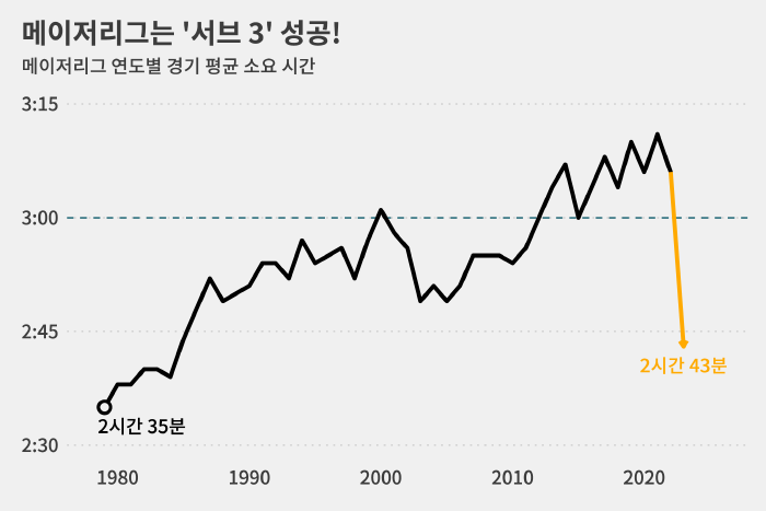 그러면서 지난해 3시간 6분이었던 평균 경기 시간을 2시간 43분으로 23분(12.4%) 줄이는 데 성공했습니다.