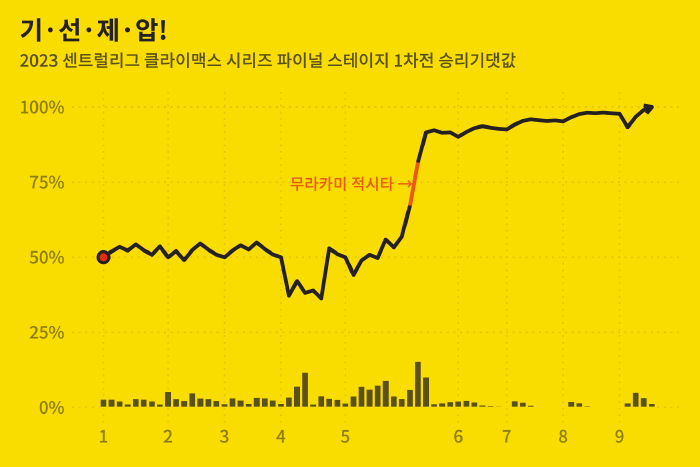 요컨대 1차전은 9번 타자, 2차전은 8번 타자, 3차전은 7번 타자가 결승타를 남긴 것.