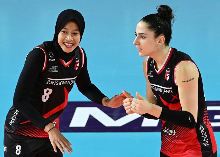 개인 공격 점유율을 따졌을 때는 GS칼텍스 실바(32·쿠바)가 43.9%로 1위지만 'AQ + 외국인' 조합은 정관장이 1위입니다.