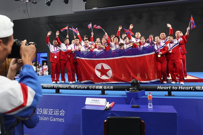 그러나 항저우 아시안게임 때는 개·폐회식뿐 아니라 대회 기간 내내 북한은 인공기를 자유롭게 사용했습니다.
